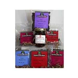 Enjoy the Dried Fruit Sampler Pack by Cherryland's Best includes soemthing for everyone. Each sampler contains a package of Door County dried cherries, dried cherry-berry mix, dried cranberries, dried blueberries, milk chocolate covered dried cherries, and dark chocolate covered dried cherries. These dried fruits are available in your choice of 8 oz. or 1 lb. packages. Both size options also include a 12 oz. jar of Whole Cherry Jam. The Dried Fruit Sampler is a unique gift idea for a housewarming party or just because!